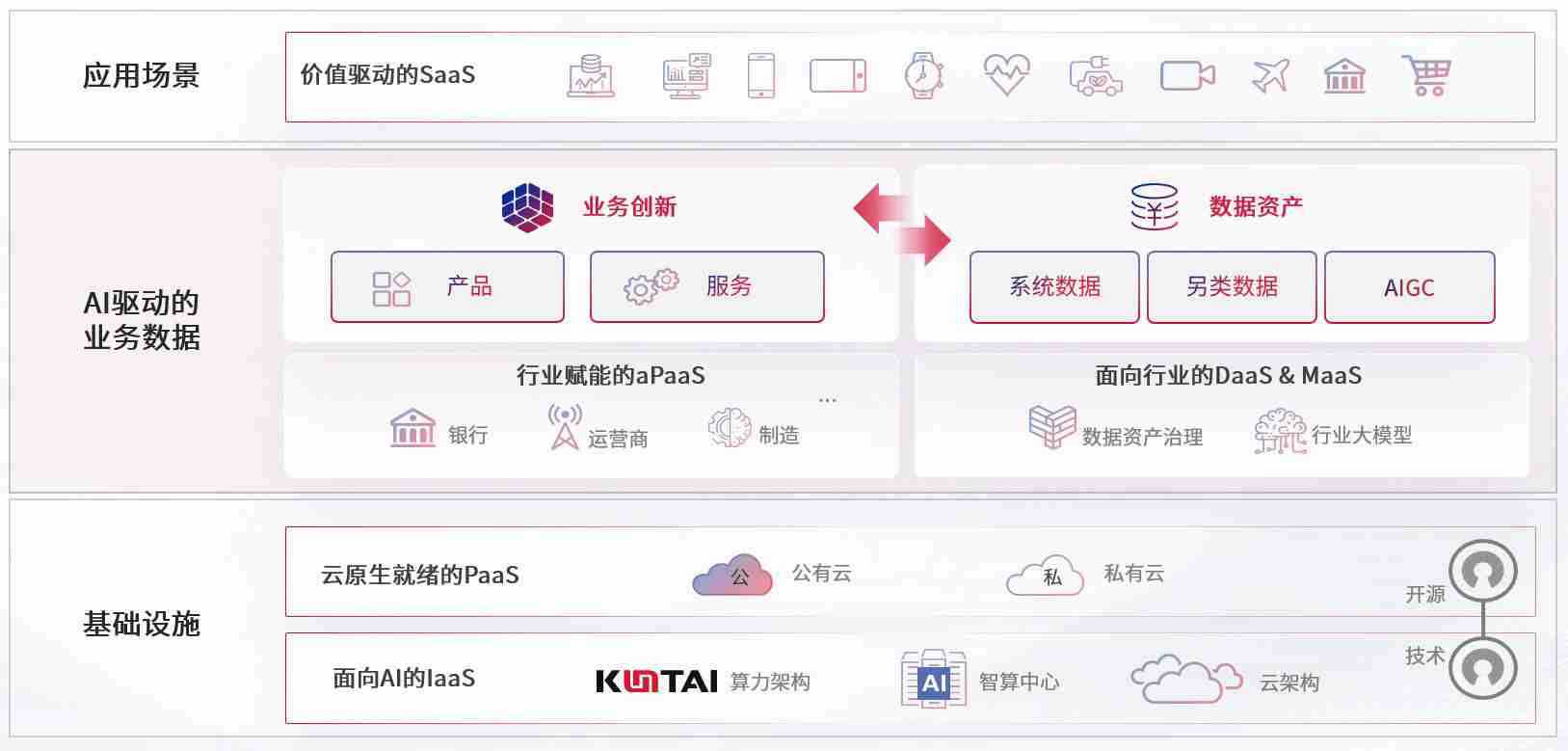 数字时代,,,,围绕企业数字化转型的关键要素,,,,z6com尊龙凯时数码开创性的提出数云融合战略和技术体系框架,,着力在云原生、、数字原生、、、、AI原生和信创产业上架构产品和服务能力,,为处在不同数字化转型阶段的快消零售、、汽车、、金融、、、医疗、、、、政企、、教育、、、、运营商等行业客户提供泛在的敏捷IT能力和融合的数据驱动能力,,,,构建跨界融合创新的数字业务场景和新业务模式,,助力企业级客户建立面向未来的核心能力和竞争优势,,全面推动社会的数字化、、、智能化转型升级。。。。
