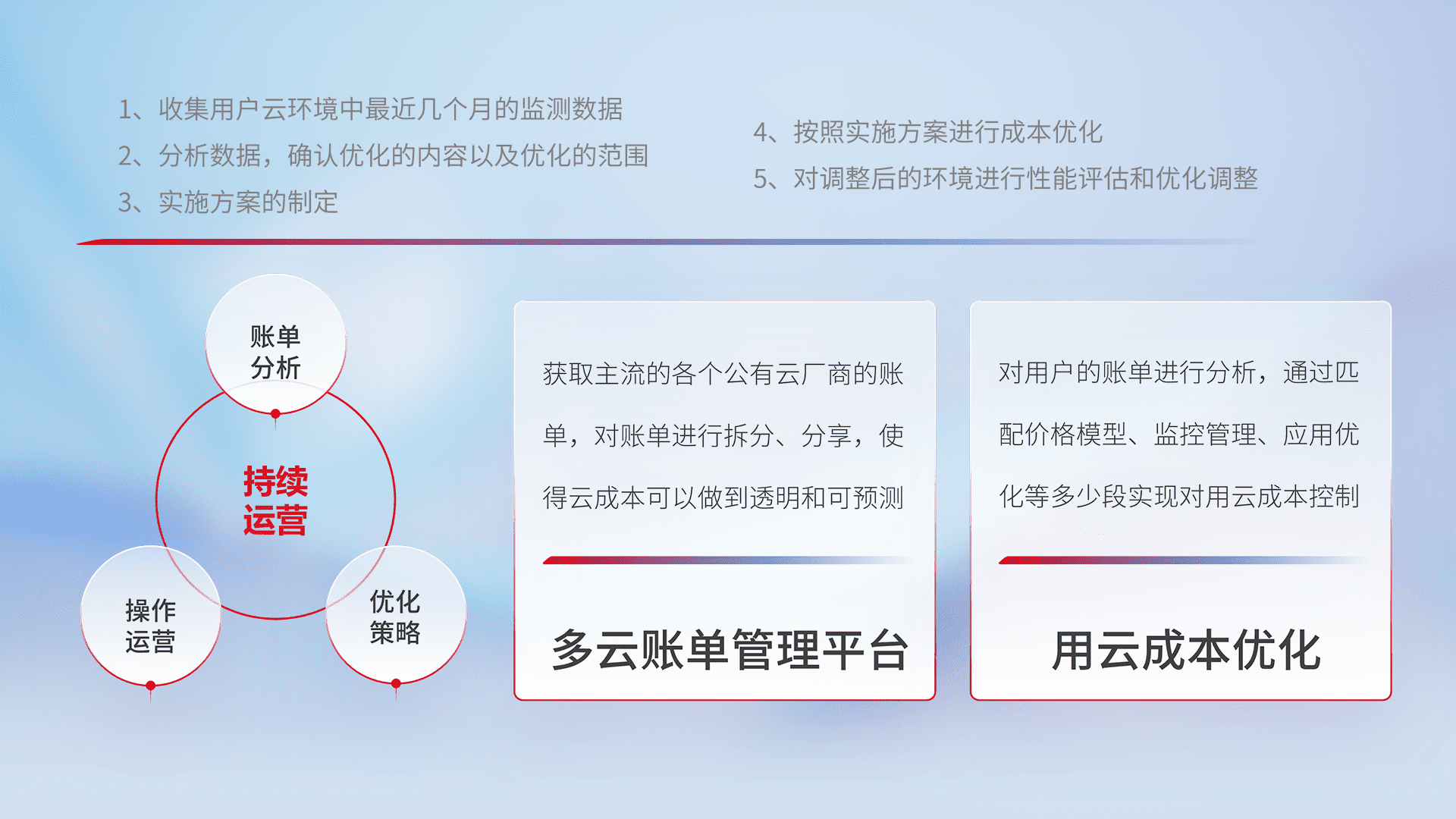 监控业务系统资源开销,,对资源的消耗精确计量,,实现费用的透明化管理,,,,不断提升资源使用率,,,调整资源购买方式,,降低资源费用成本,,用云成本可预测、、、用云费用可优化,,,云资源配额有据可依。。